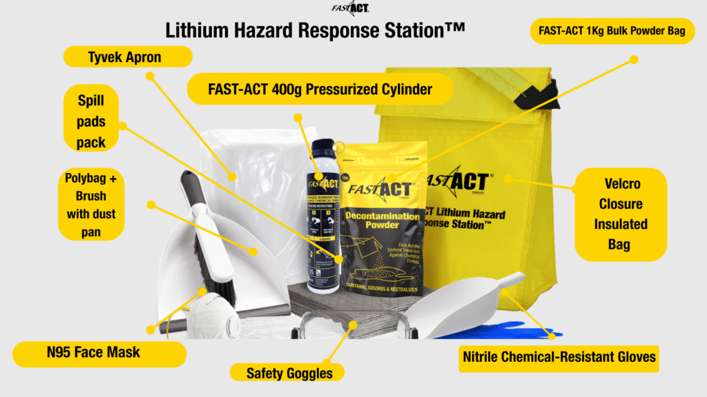 The DOT hazmat inspection priorities highlight areas where hazardous materials incidents are more likely to occur, such as undeclared shipments, packaging failures, and lithium battery transport. FAST-ACT supports emergency response and exposure mitigation in these types of scenarios by providing rapid-deployment decontamination tools designed for use when hazardous materials are already present.