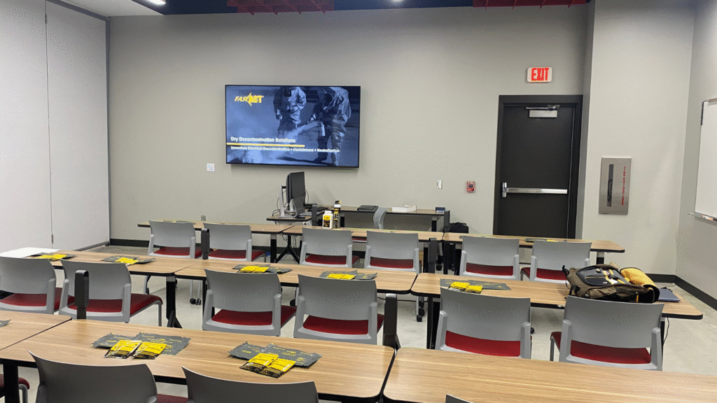 FAST-ACT strengthens chemical readiness by providing hands-on demonstrations, instructor-led training, and dry decontamination solutions that reduce response times and enhance safety during chemical incidents.
