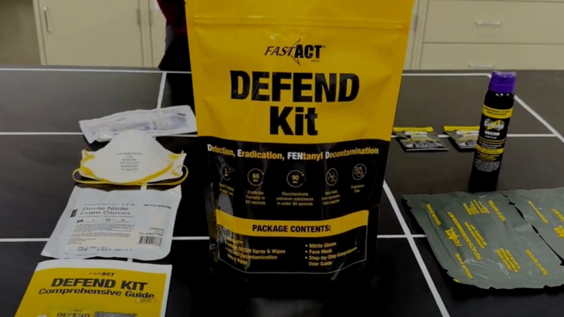 The DEFEND Kit—Detection, Eradication, and FENtanyl Decontamination—is a comprehensive fentanyl decontamination solution developed by FAST-ACT. It provides a process-driven framework that guides operators through detection, neutralization, and clean-up of fentanyl and its derivatives, supporting responder safety at every step.